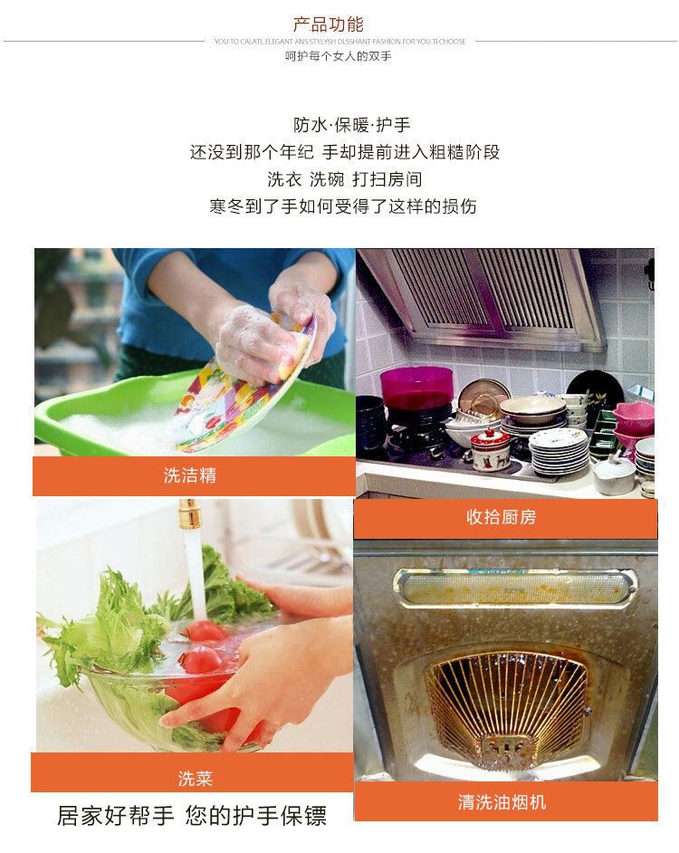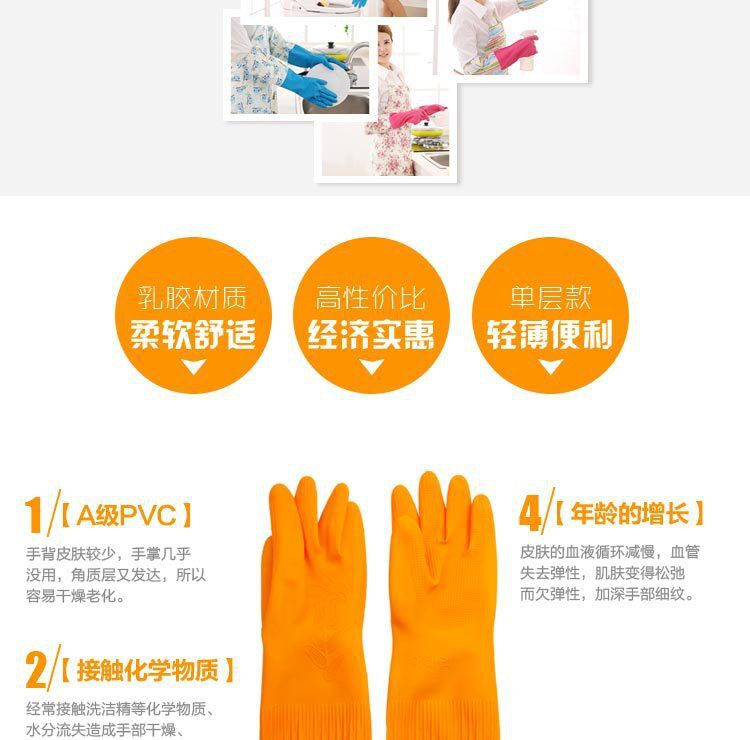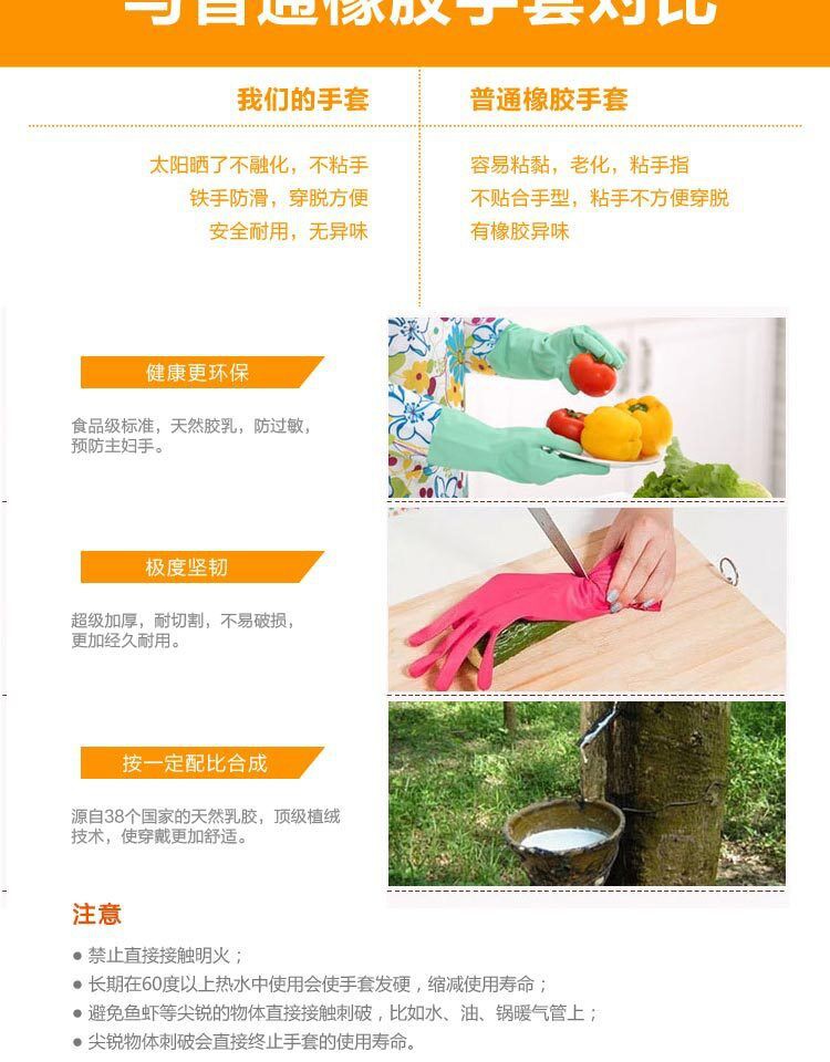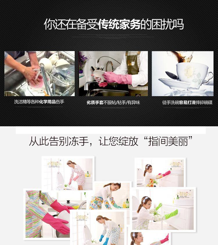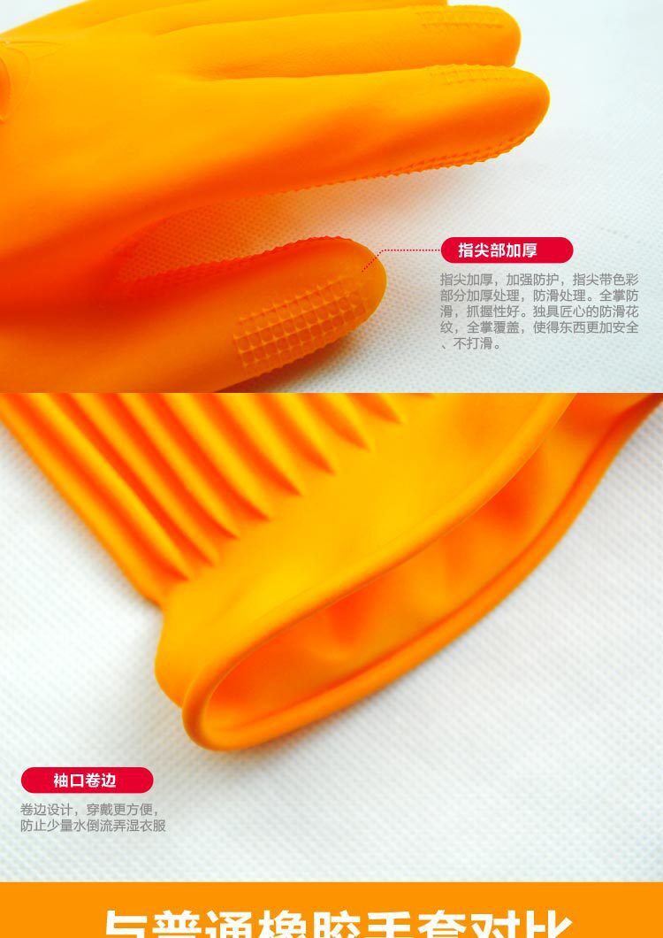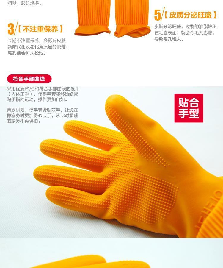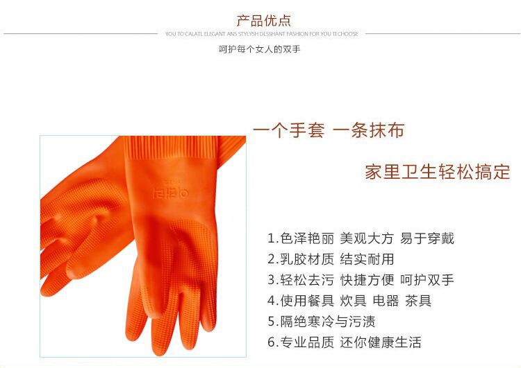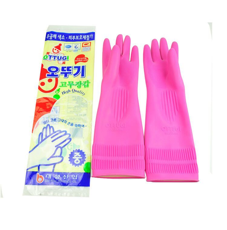 包邮 韩国日用品 家务长袖 防水防油 硅胶乳胶橡胶手套 厨房清洁M