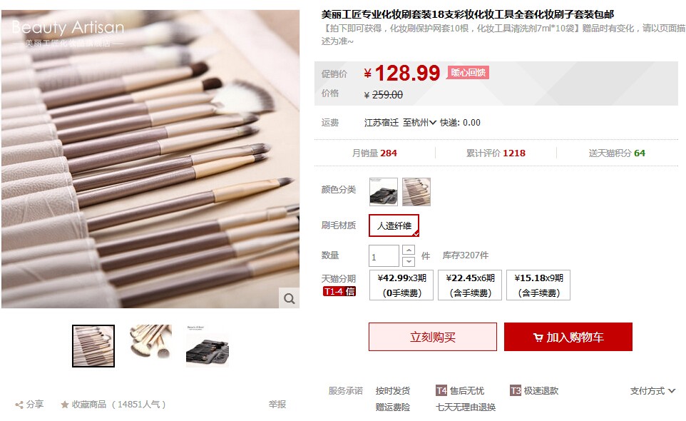 美丽工匠专业化妆刷套装18支彩妆化妆工具全套化妆刷子套装包邮