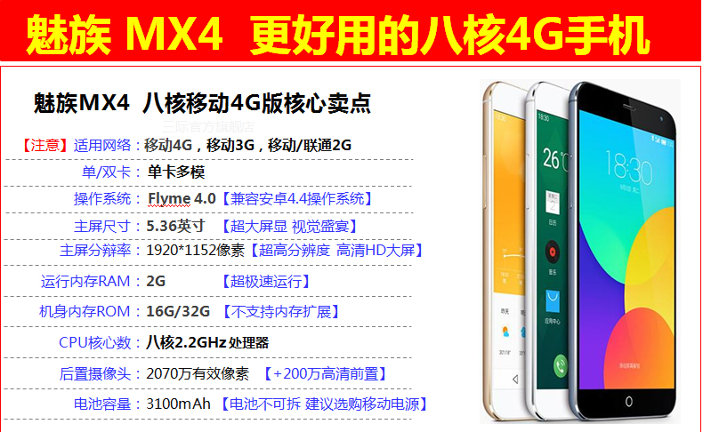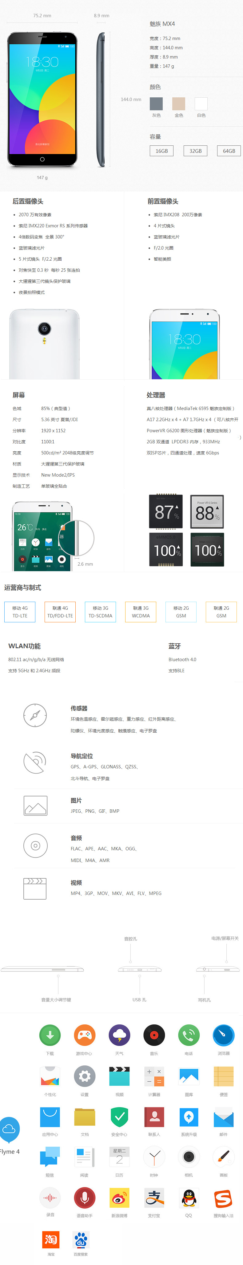 极速发【送钢化膜+皮套+耳机】Meizu/魅族 MX4移动版手机4G