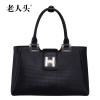老人头/LAORENTOU/高档牛皮简约大牌手提斜挎撞色通勤公事包/958J007L |