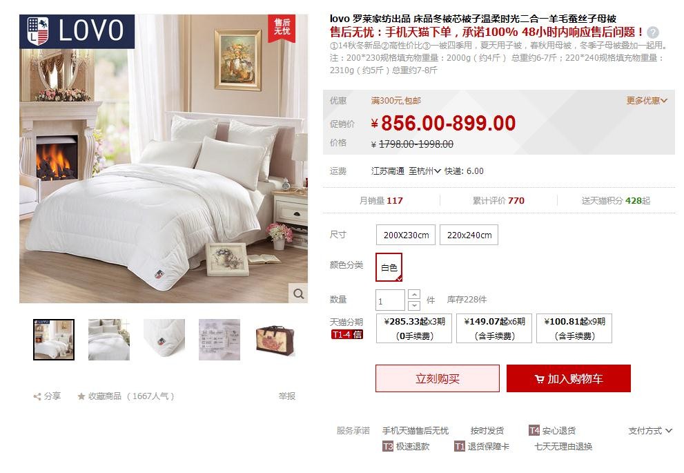 母被面料:100%聚酯纤维 填充物:100%羊毛 |