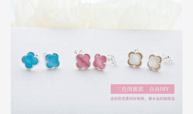 银时代 宠儿 四叶草耳钉耳饰 925银饰品 女 蓝色幸运草 生日礼物
