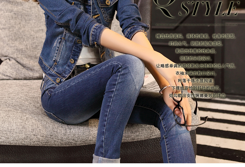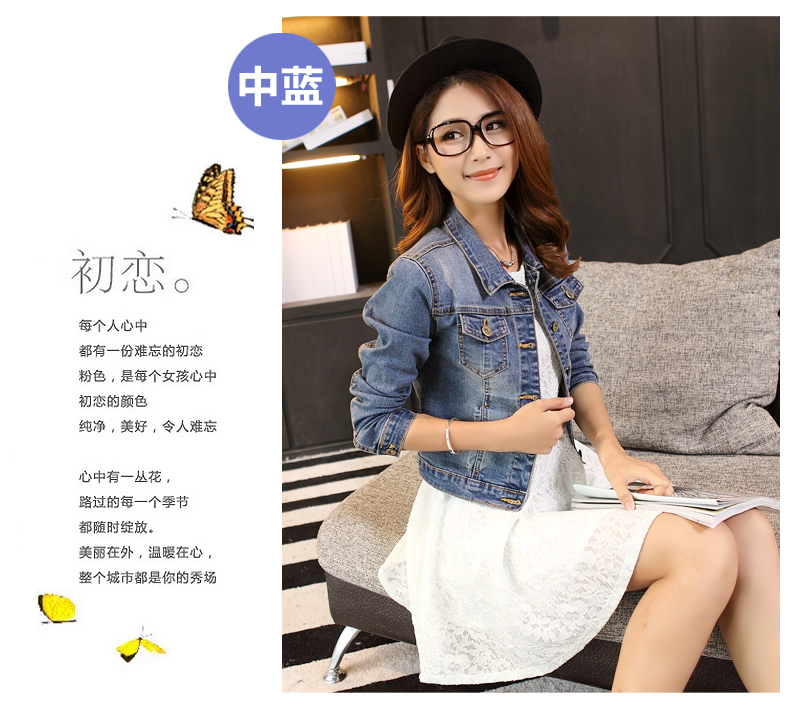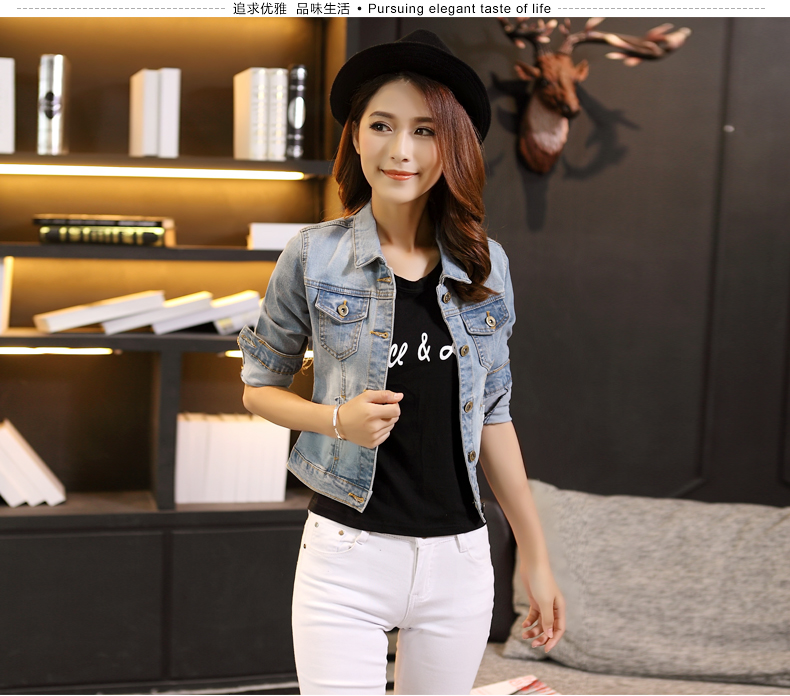 艺之兰卡牛仔外套女秋装新款韩版修身短款外套百搭纯色长袖牛仔衣