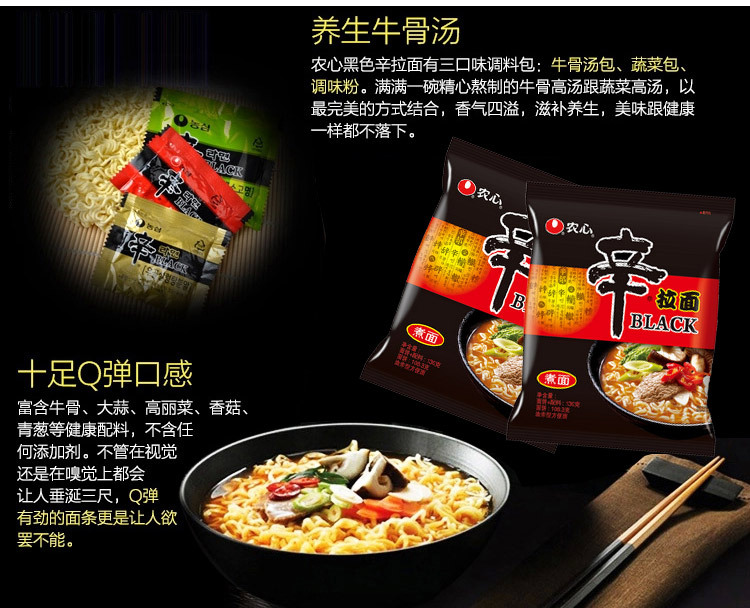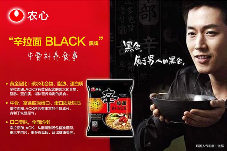 正宗韩国辛辣BLACK黑面 农心香菇牛肉拉面 泡面速食面 130g