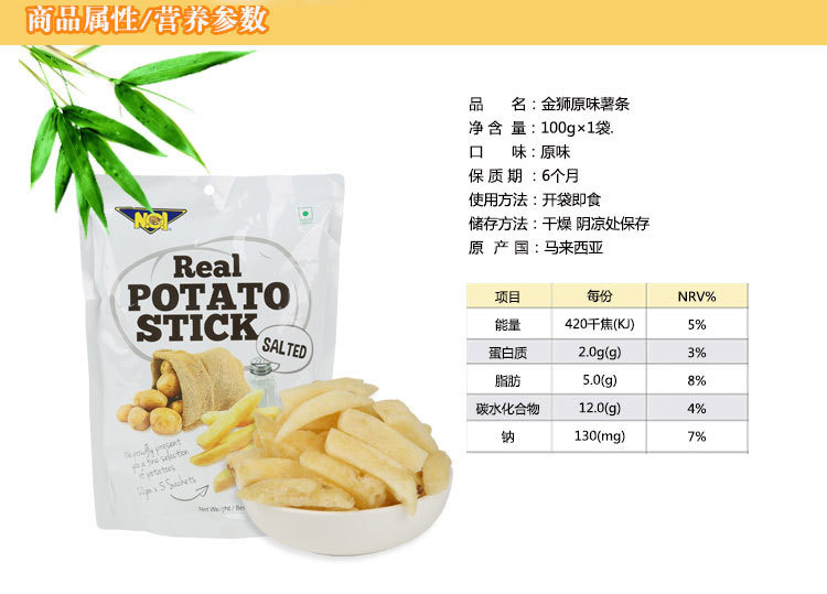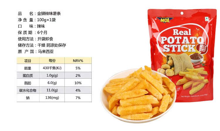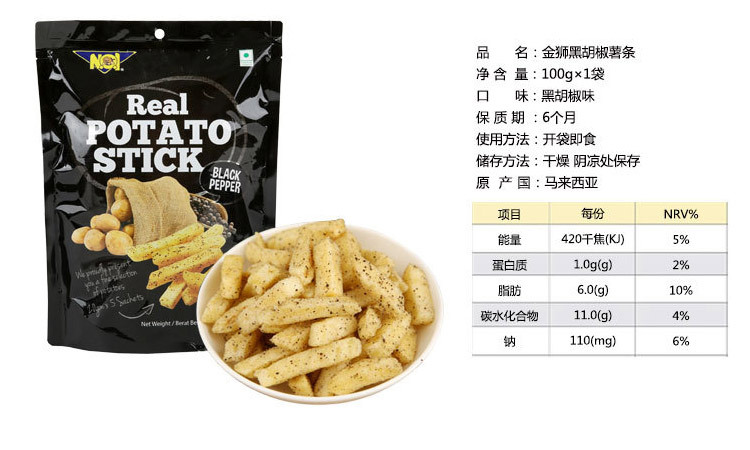 马来西亚进口 金狮马铃薯条100g原味/香辣/黑胡椒/什锦味膨化零食