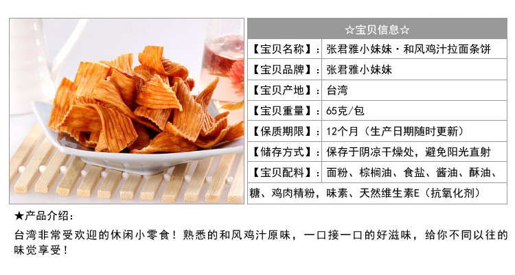 台湾进口休闲零食小吃张君雅小妹妹和风鸡汁拉面条饼65g