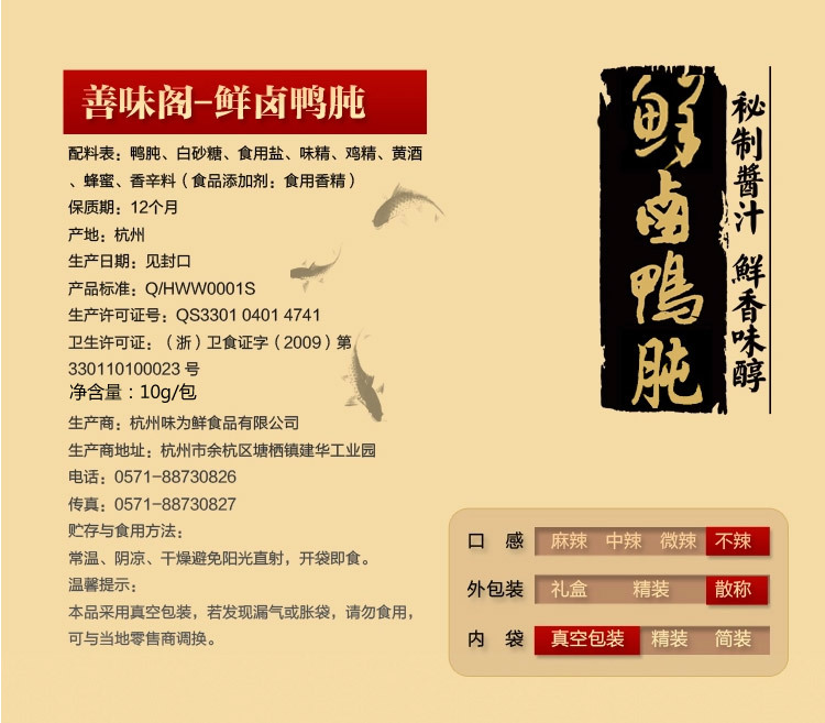 零食小吃特产 善味阁鲜卤鸭肫肝鸭珍鸭胗年货10g特价